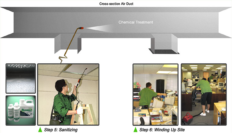 Chemical treatment capable to mutilate 99% bacteria from the air duct and AC system. To reduce sources that aggravate health problems.