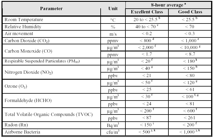 Public Places table by Hong Kong SAR Indoor Air Quality